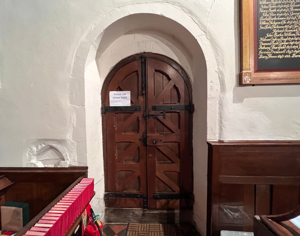 There are 4 dials, each of significance. On the S wall of the chancel, there is a wonderful dial framed in ashlar stone as if to emphasise its qualities. Inside the church – not just inside the porch – are 3 dials cut on the same stone. Interior dials are almost inevitably the result of relocation and are scarce enough (cf THORNFORD); 3 together must be very rare.