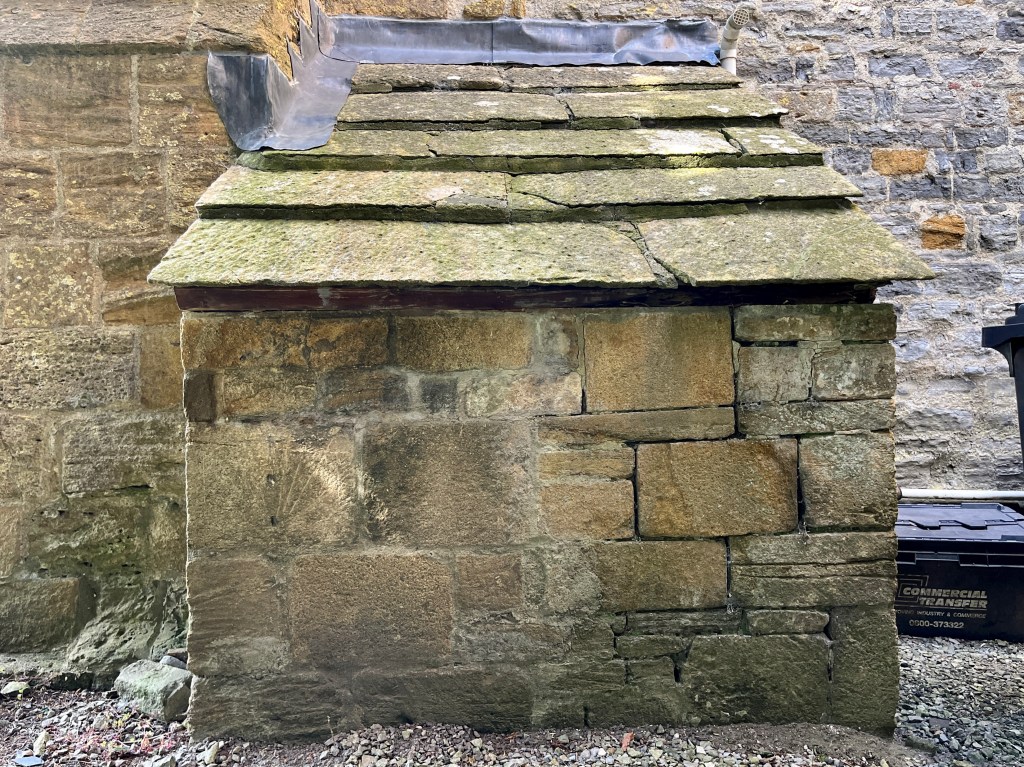 On a quoin stone E of Dial 1 is a shallow hole from which a single thin line extends to mark noon. Plausibly a dial – especially as in a group – but perhaps not definite.