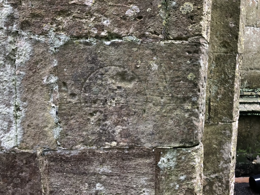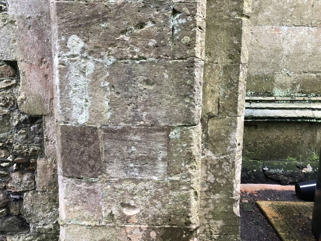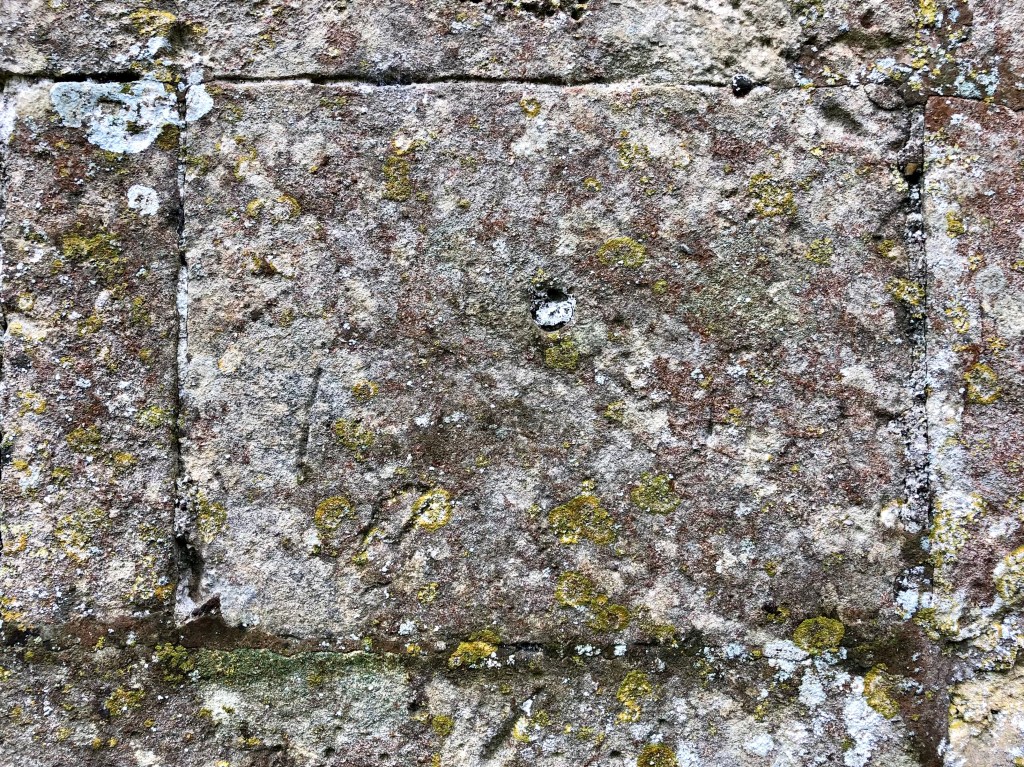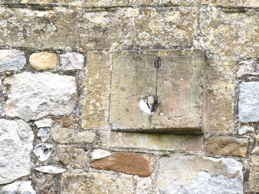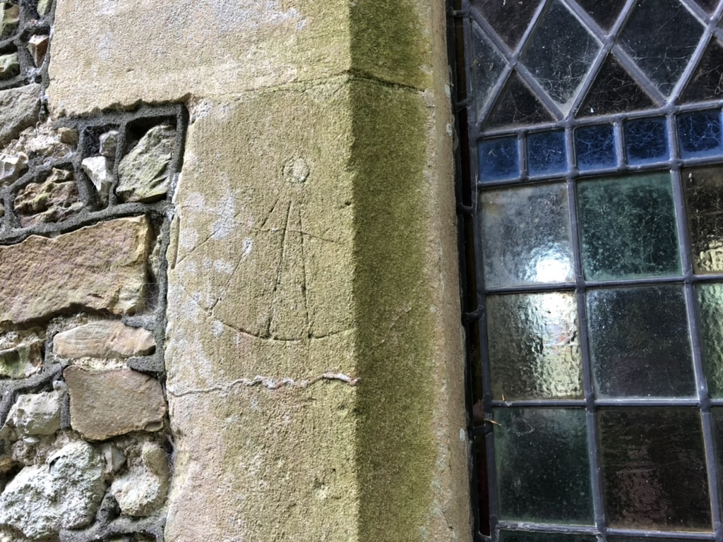 The dial was correctly delineated to face 38° east of south. The cast bronze gnomon fell off but was kept by the church wardens. Its original angle was incorrect, and it was set into a slot in the stone to compensate. Restoration involved re-engineering the gnomon and making new clamps to fix it. The dial itself was renovated [précis]